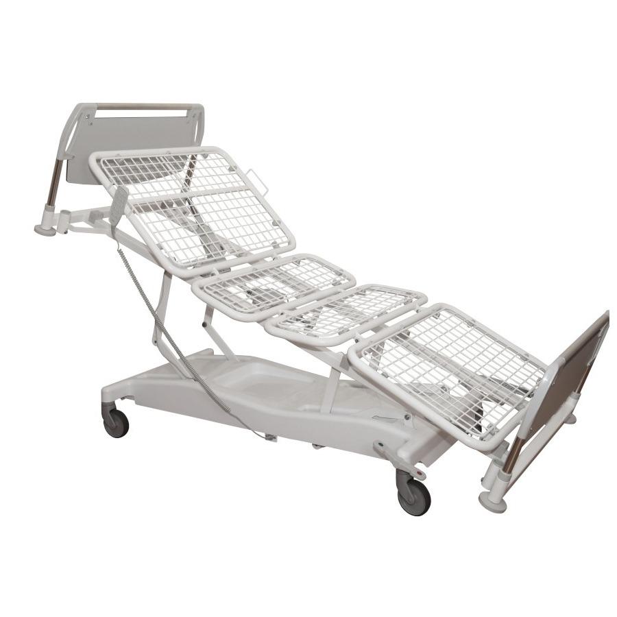 Кровать оснащена четырёхсекционным ложем (стальная сетка или ABS‑пластик), электроприводами для регулировки высоты, спинной и бедренной секций, а также механизмом «Растомат» для изменения угла наклона ножной секции. Поддерживаются клинически важные положения: Тренделенбург, АнтиТренделенбург и Кардиологическое кресло.